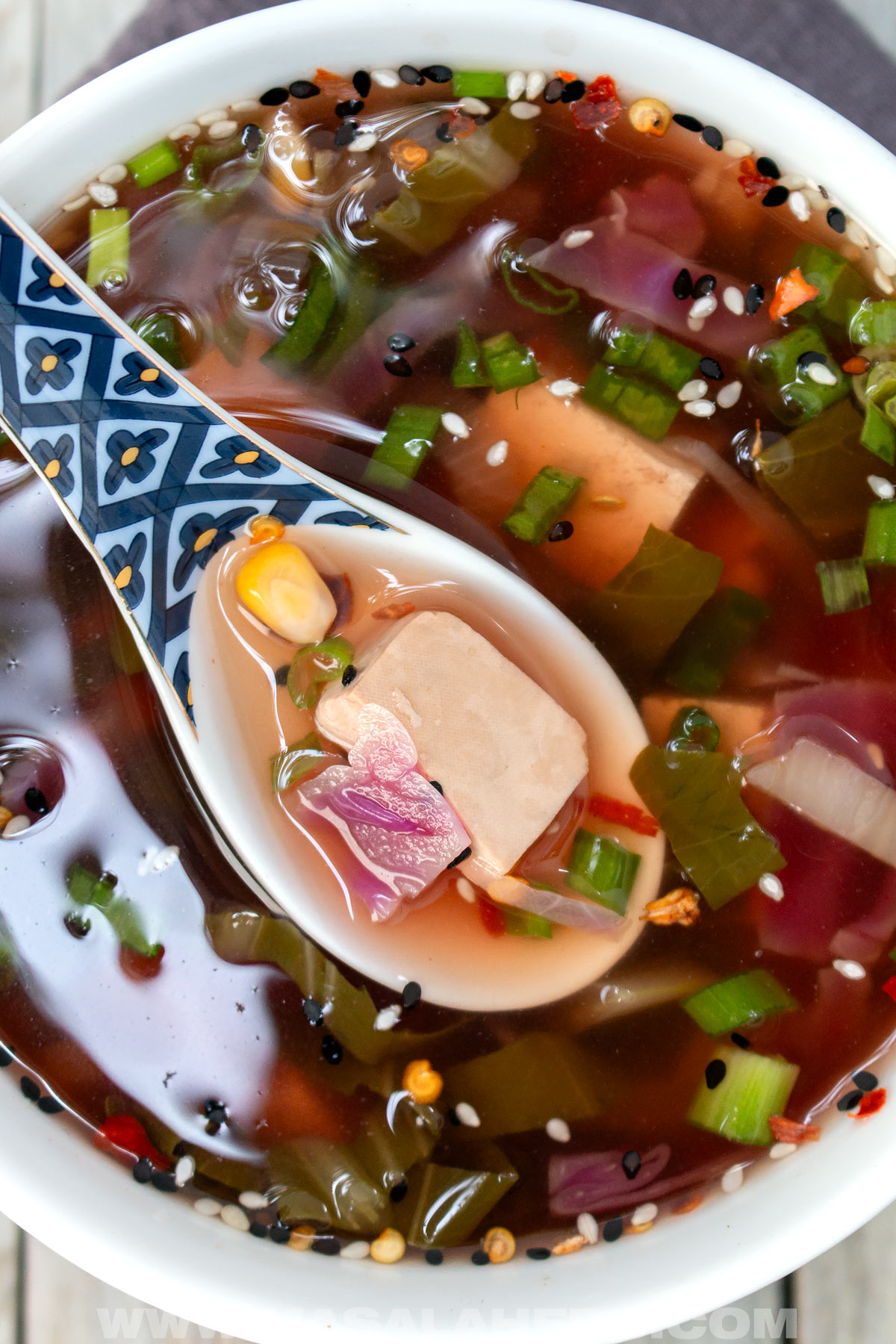 A vibrant clear, oil-free, one-pot, Asian tofu vegetable soup that you can prepare when you are short on time or tired of your day.