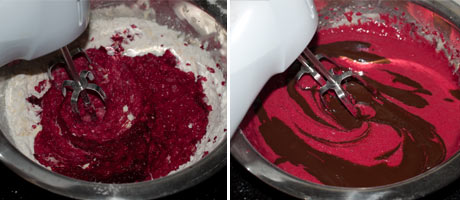 Melting into the chocolate batter, it still lends the cake a certain rouge, even after baking.