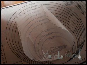 - Take a Tart form and place it on a baking paper. Draw around the form on the paper with a pencil and cut it out. We will need it later!