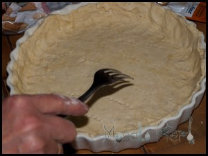 - Place the cut out dough into the buttered form and poke with a fork a few fine wholes into it.