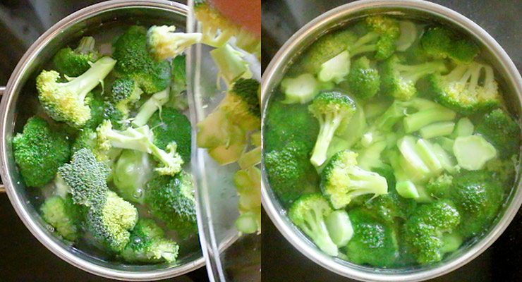 When done, take the broccoli through cold running water, as this will retain the green color too. Get rid of excess water and keep your broccoli aside.