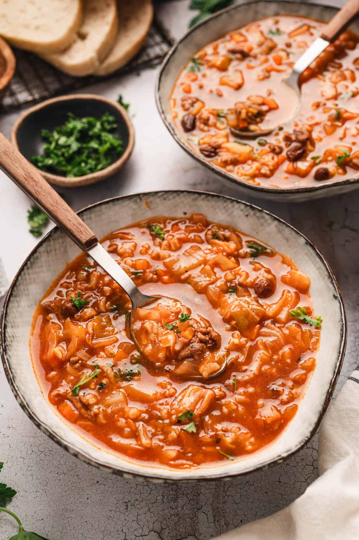 Enjoy the beloved taste of a classic dish without all the work in this hearty soup filled with beef, rice, and cabbage. There's even a surprising ingredient that makes it stand out.