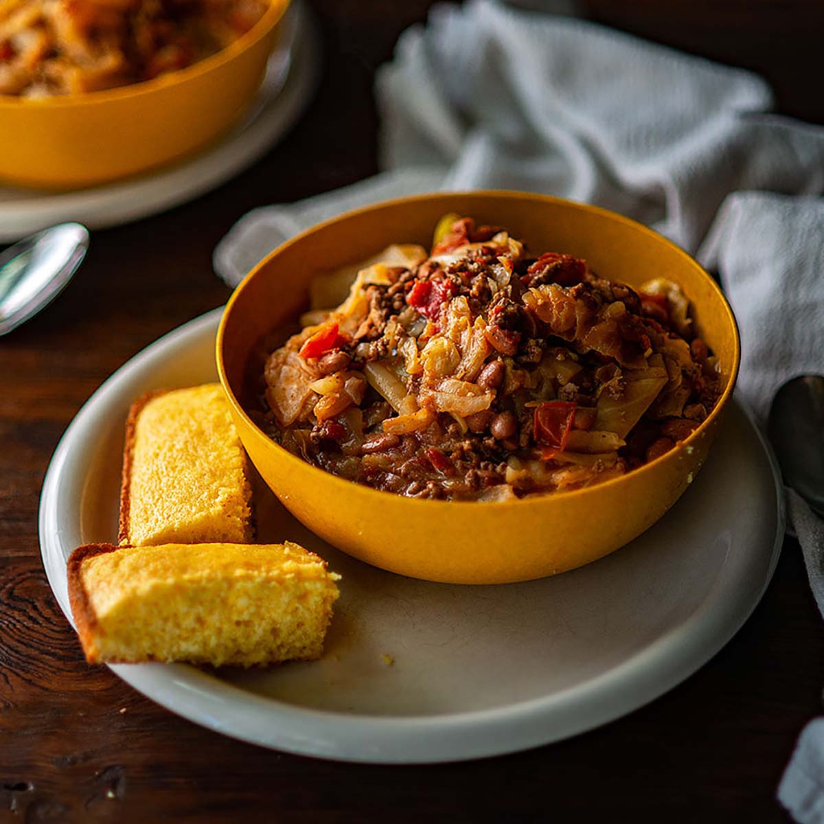 Cabbage and ground beef simmer together with beans to create a hearty stew full of flavor. The slow cooking brings out a rich taste and a satisfying texture that makes it a meal on its own.