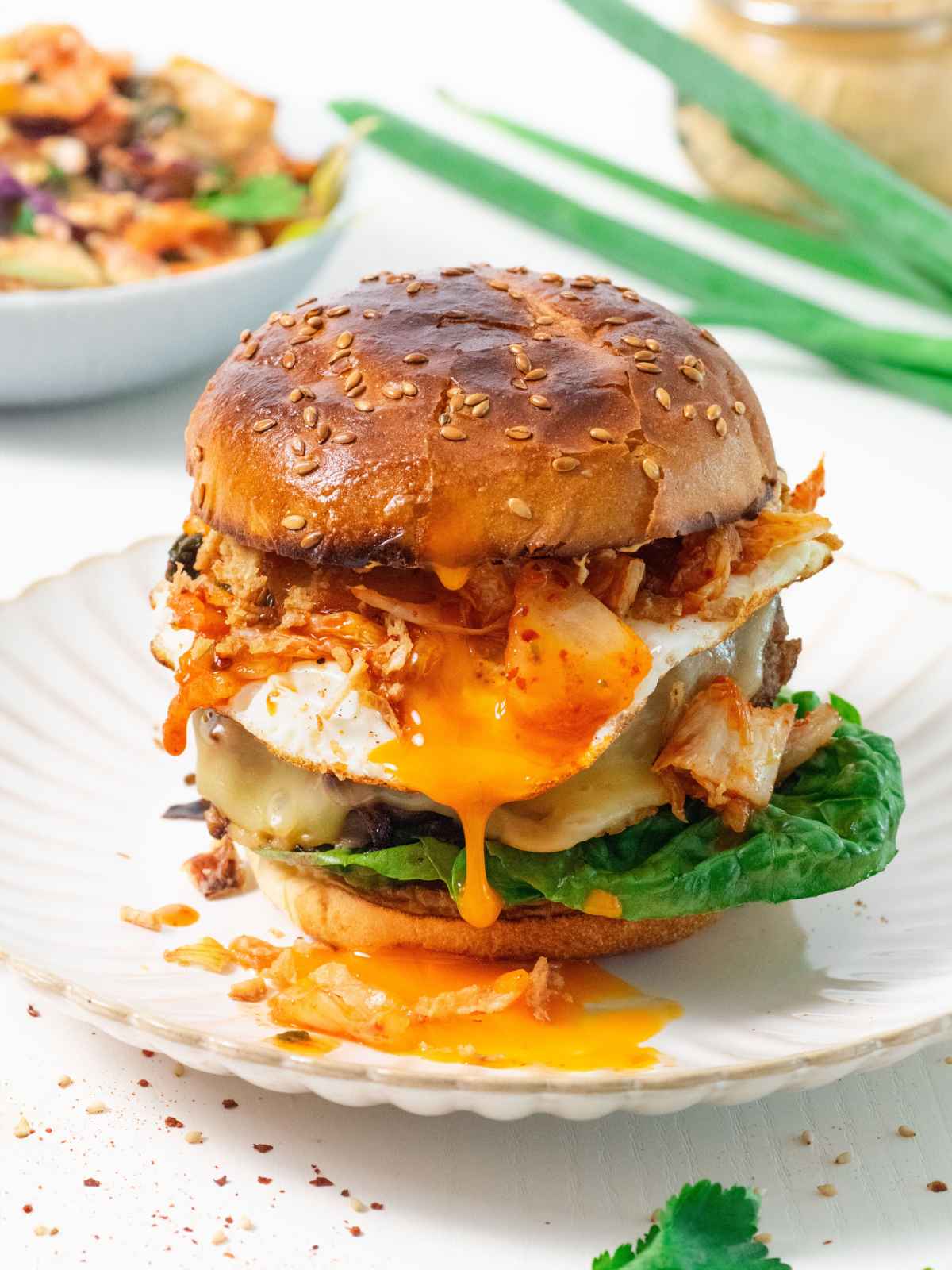 Korean Kimchi Burger with Spicy Kimchi Mayo