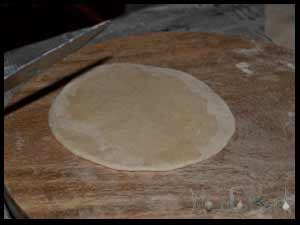 - Start by mixing the Flour and the salt well, make a well and add the oil and water. Mix and work out the dough on a board. It should never be soft but rather harder! Let it rest covered with some flour. Best is over night or at least 30 minutes.