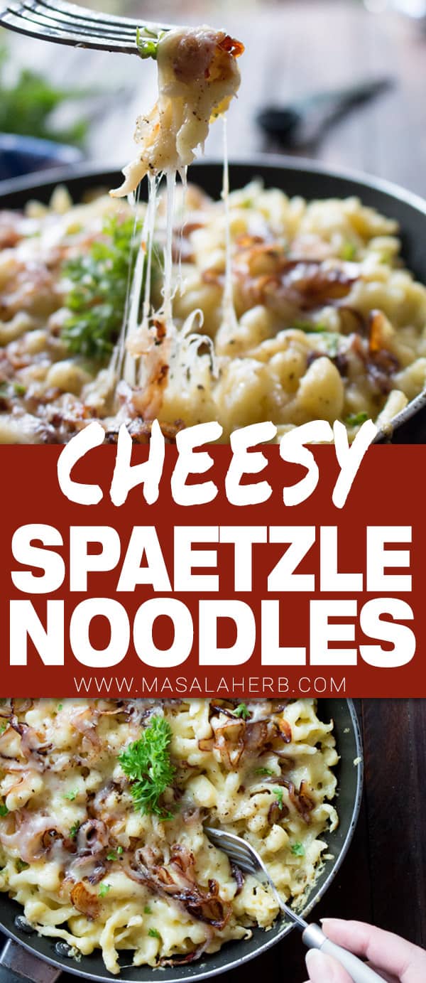 Comfort food at large! Cheese Spaetzle noodles are easy to prepare if you have spätzle noodles at home.