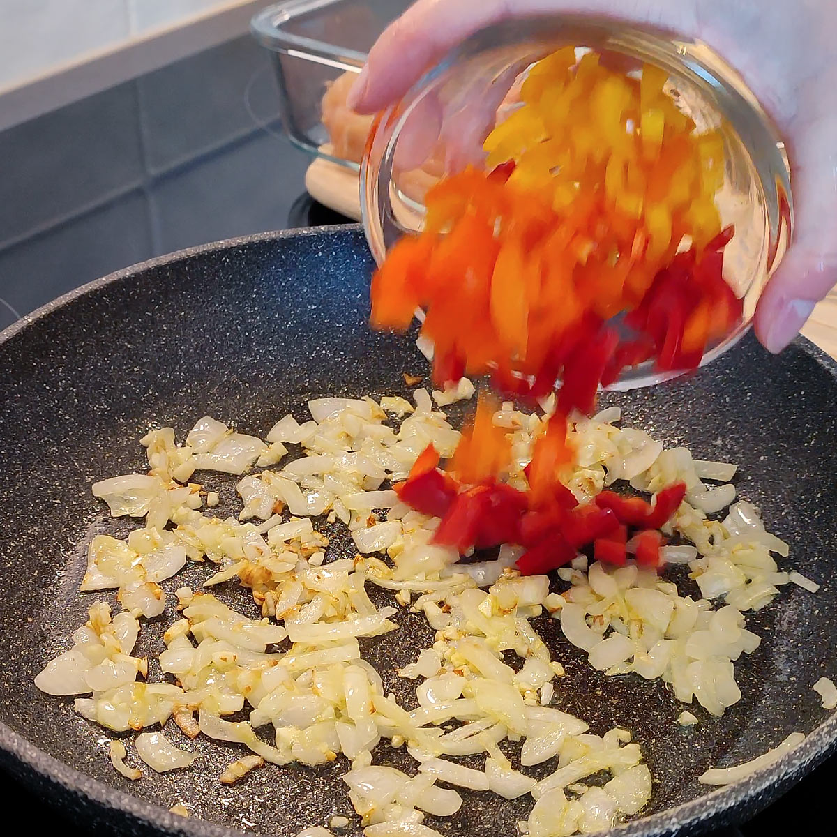 - Heat a skillet with the oil and sauté first the onions a bit soft over a medium heat setting. Reduce the heat and stir in chopped garlic, cook briefly.1 Medium Onion, 2 Tablespoon Olive Oil, 2 Cloves Garlic