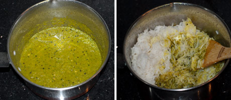 - Stir the whole content for a minute on this low-heat setting and then add the green cilantro paste which you prepared earlier.