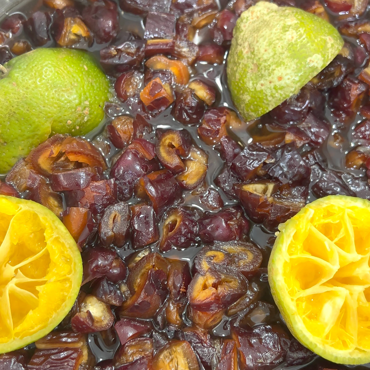 • Leave to macerate (infuse) for about 12 hours or overnight so that the dates soften and infused with the lime and sugar.
