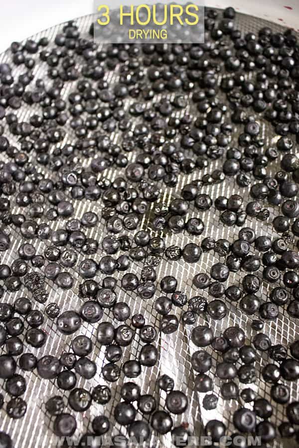- Check on the drying process of your blueberries. I like to switch the position of the baskets every few hours so that the fruits get equally dried and I make sure that the berries don't stick on the grid.