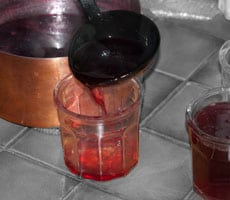 - Strain the boiled currants. Make sure to squeeze the fruit left overs well so that all the juice comes out. Discard the fruit parts.