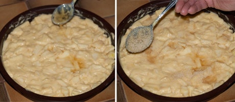 Butter your mold, fill in the apple batter.