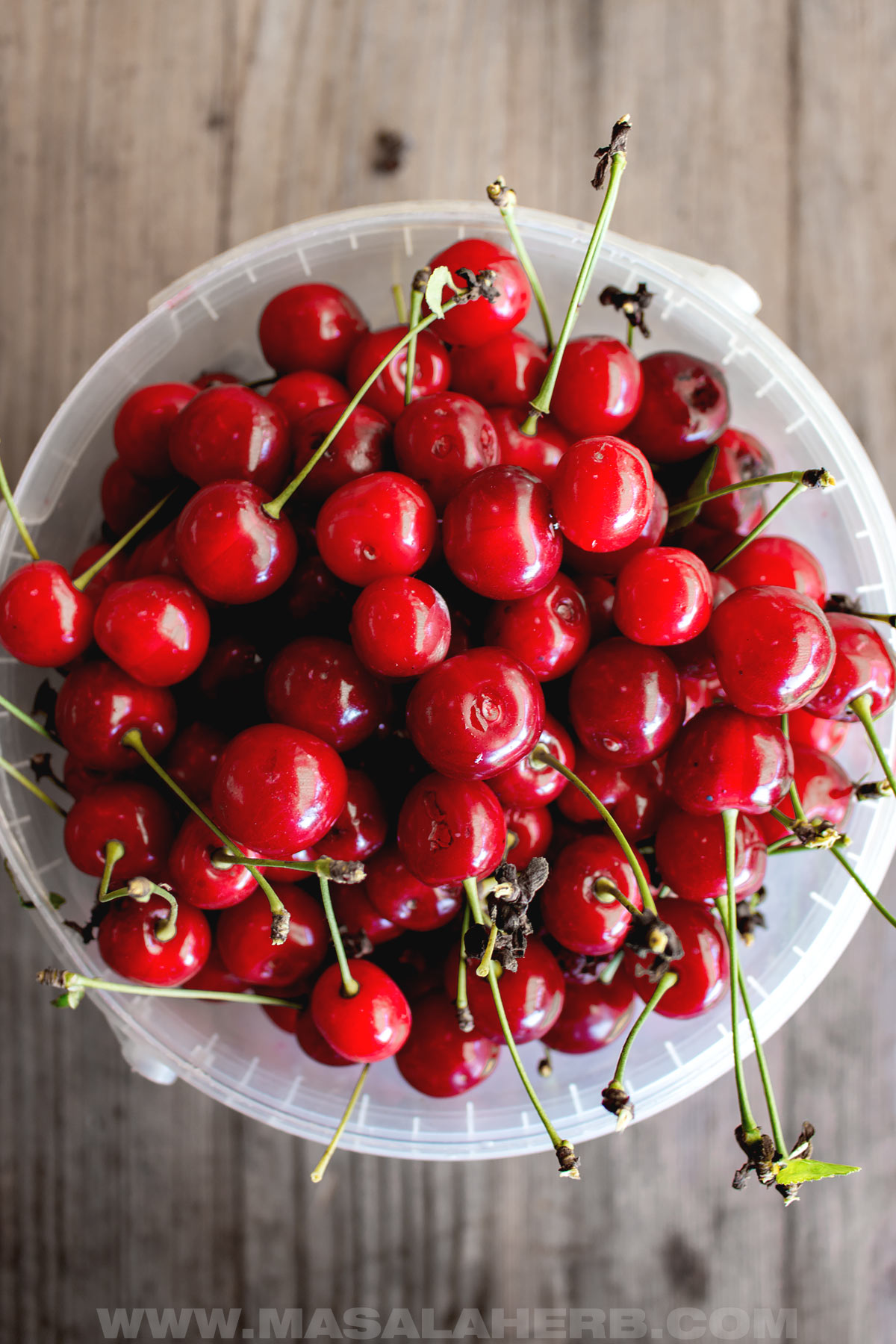 Clean the cherries, discard the leaves, remove the stems and rinse them through water. Do not pit the cherries!