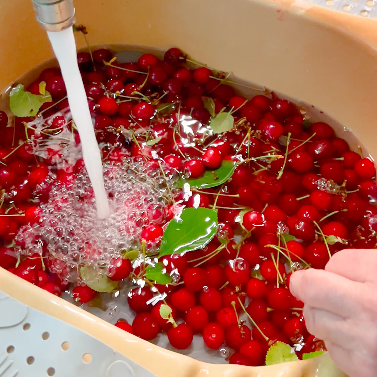 - Collect fresh cherries and wash them in clear water. Remove leaves, impurities, and the stems.