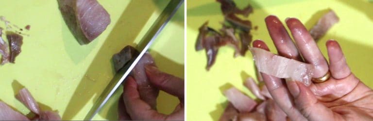 Make sure to cut off the brown fish meat, which is the bloodline and on the edge of the fish, and you are good to go.