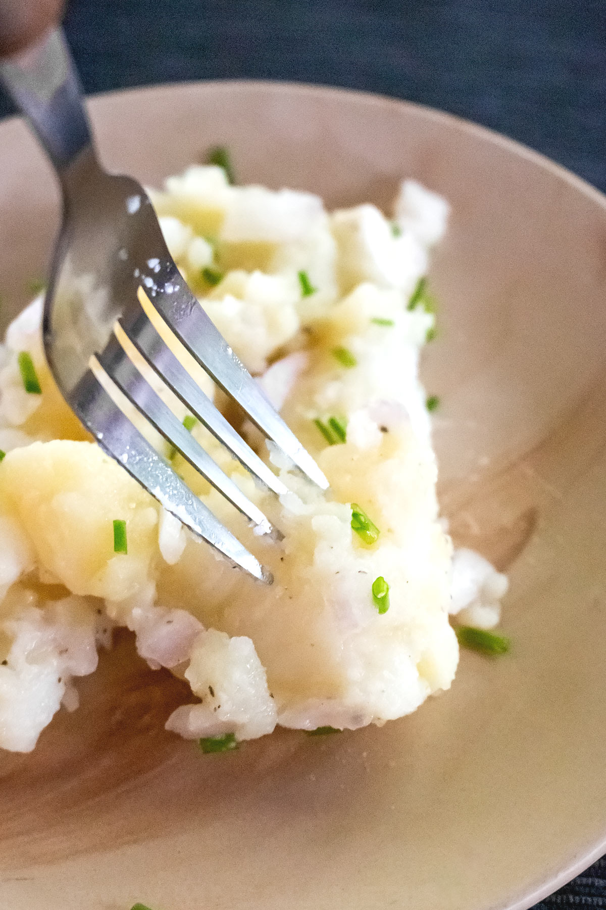 The broth basically “seasons” the potatoes. Ultimately, the potato salad tastes flavorful, but the seasoning is not all too over-powering.