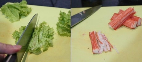I used the normal green lettuce for this Kani salad because the iceberg salad wasn't in season.
