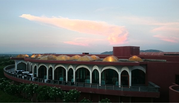 The towering red sand stone structures are is inspired by modern Rajasthani Architecture.