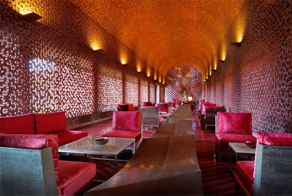The outdoor architecture plays with the Rajasthani sun light and especially the enclosed villa buildings will remind you of a jewel box.