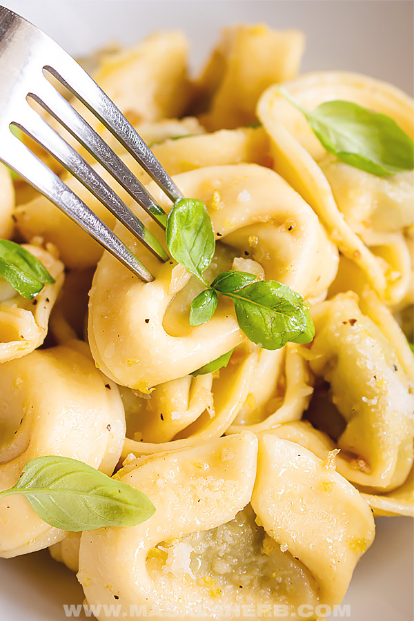 A simple but flavorful tortellini dinner meal idea, coated in a skillet with lemon, garlic, basil and olive oil.