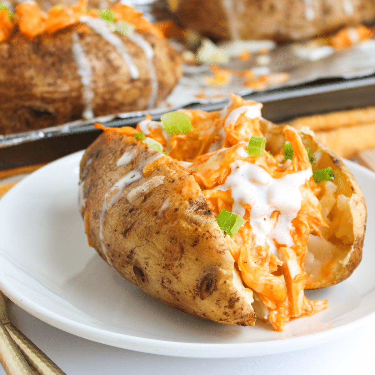 Fluffy baked potatoes packed with spicy buffalo chicken turn into a meal that's bold and satisfying. The creamy potato softens the heat while adding extra comfort. A guaranteed hit for game day or any casual dinner.