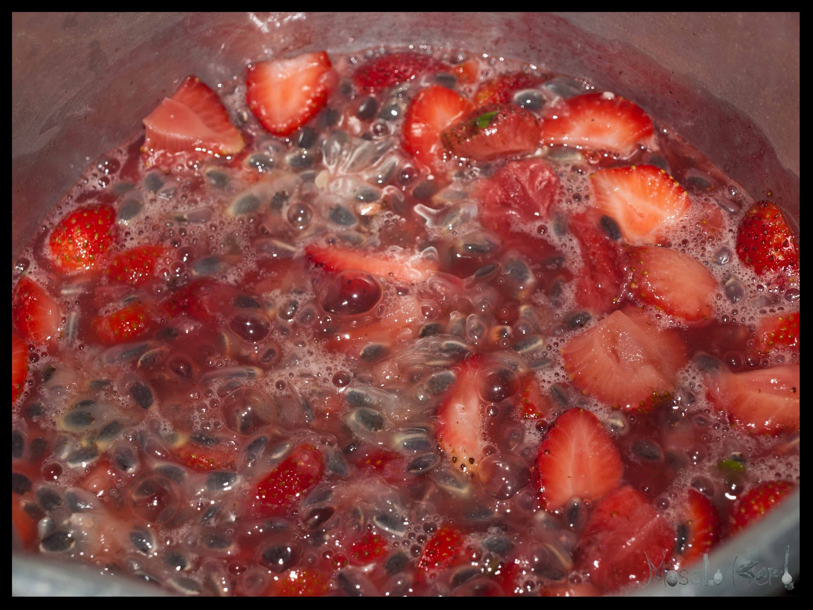 I omitted lemon juice which I usually add to jams for little sourness because I thought the Passion Fruit was Sauer enough.