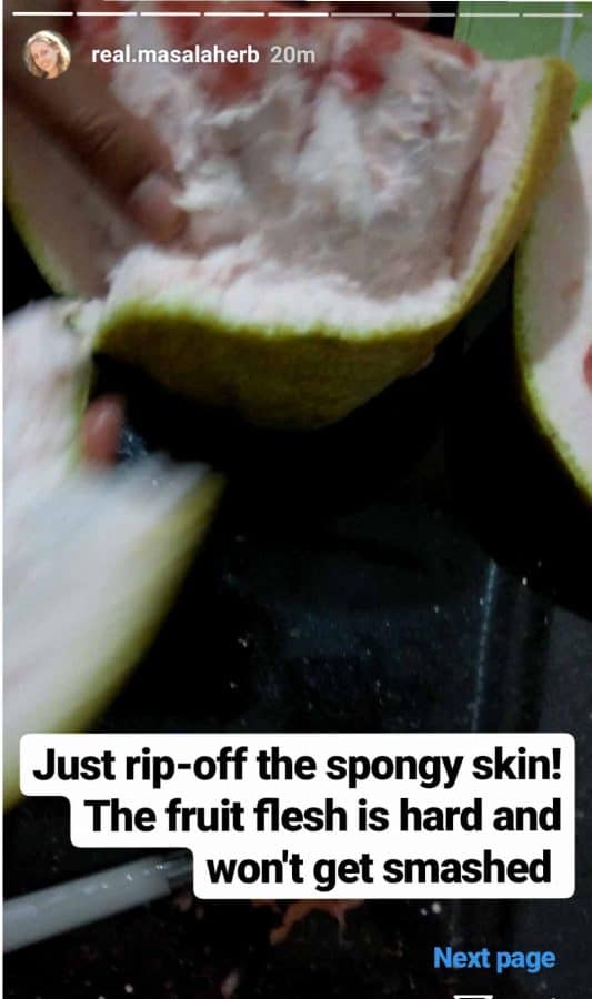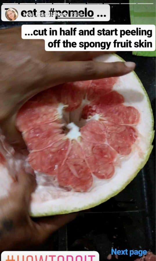A Pomelo fruit is so big that you need to open up the fruit the following way. [#Instagramstories screenshots]