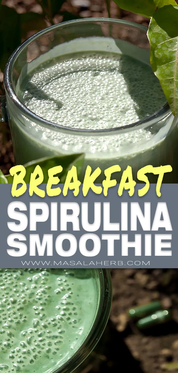 You can turn your spirulina into a spirulina smoothie bowl too and add Chia seeds, dried berries, sliced almonds and similar. Be creative!