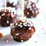 • Sprinkle sesame seeds over the meatballs as a garnish and serve at room temperature.