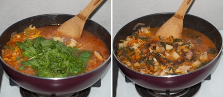 - Now add the Spinach and noodles, mix well and cook for about 4 more minutes. Remove from the heat and add the soy sauce and lemon juice. Mix very well and gobble the soup over into in the soup bowls.