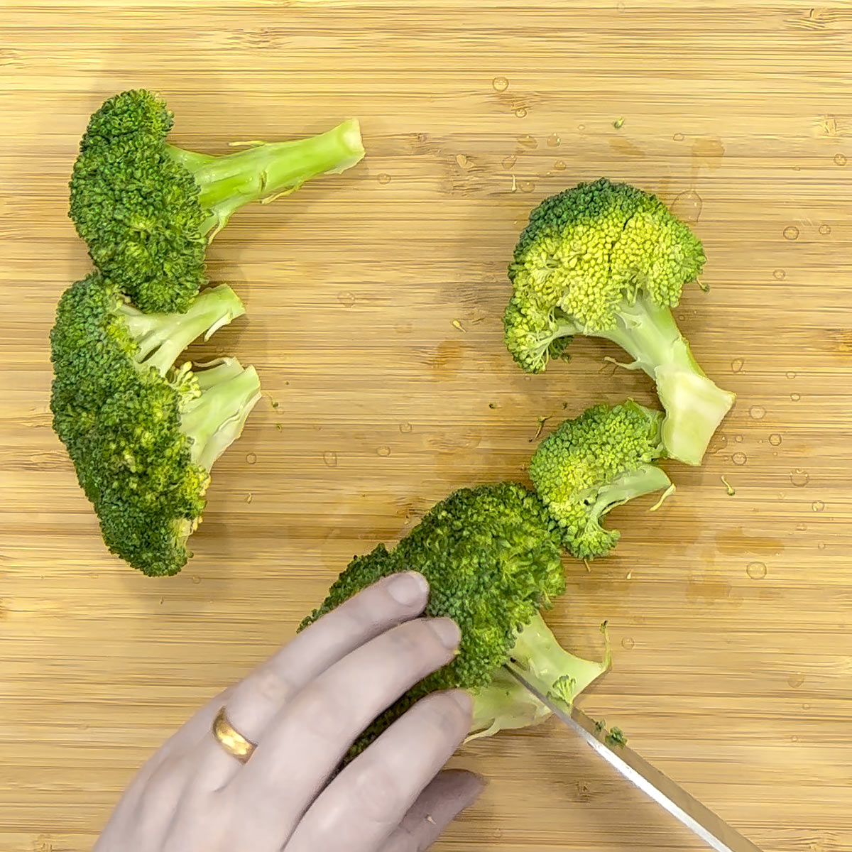 - Prep your broccoli. Cut into manageable florets and cut off fibrous stems. Place in a bowl with water and a dash of vinegar and submerge florets (to remove impurities and trapped insects).1 Medium Broccoli