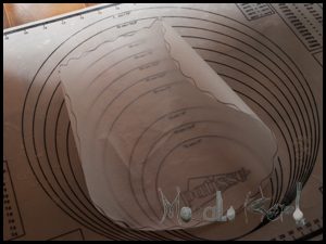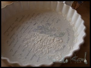 Take a Tart form and place it on a baking paper. Draw around the form on the paper with a pencil and cut it out. We will need it later!