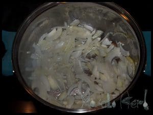 Add the Butter to the pan and fry the Onions translucent and continue to add the Garlic. Fry for 3 min on medium heat.
